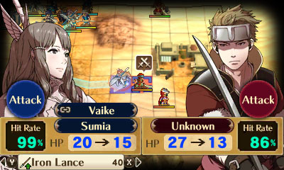 I think a big key to that is how the games portray the lives and emotions of all the characters -- even the standard enemy units. We've gotten feedback that we should give all the units names, even the unimportant [grunt soldiers]. I think that's all part of the unique feeling Fire Emblem creates -- we work to make it seem like each unit has their own life, so when somebody dies, their presence stays with you in a way. That's why all the enemies in this game have full artwork as well as the main characters -- you can see their faces on-screen when comparing battle stats and such.