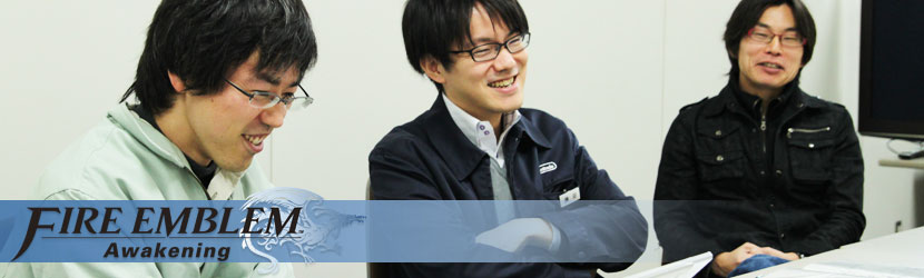 Three different occasions come to mind. First, for someone like me who's been familiar with Fire Emblem for a while, hearing the news that we were going forward with the project was really a rush. Next was when I heard that we were going with Kozaki-san for the character designs; that was another "All right!" kind of moment. The third overlaps with what Maeda-san said: that time spent playtesting, trying to figure out which classes and parameters and maps were the best was a lot of fun.